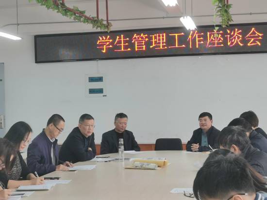 2021年11月29日上午,我院在实训楼八楼商务谈判室召开了学生管理工作座谈会。学校学工处领导班子、院领导班子和全体辅导员参加了座谈会。