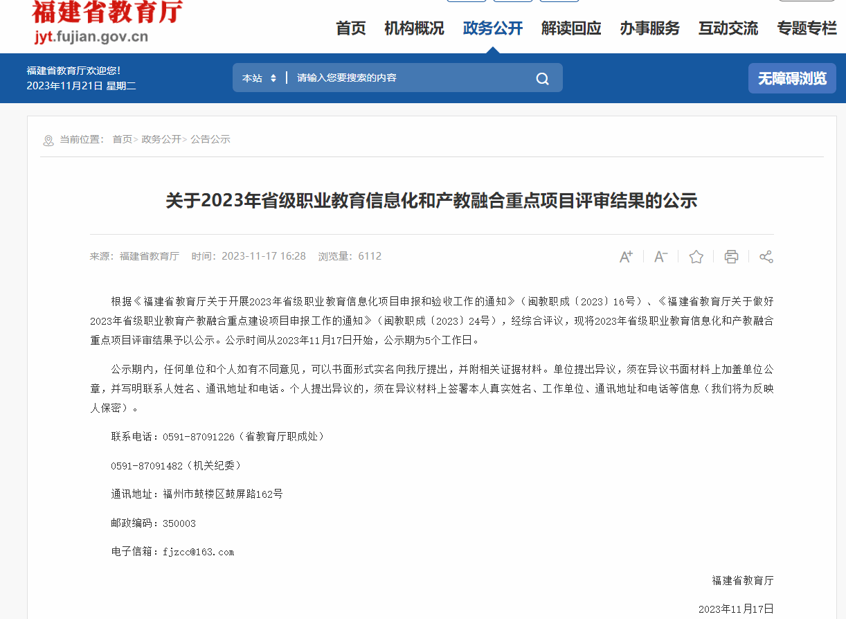 据了解,在11月17日福建省教育厅公布的《2023年省级职业教育信息化和产教融合重点项目评审》结果中,royal皇家88平台共12个项目被确定立项。其中,智慧建造虚拟仿真实训基地、数智物流虚拟仿真实训基地、健康服务示范性虚拟仿真实训基地3个实训基地被确立为省级职业教育示范性虚拟仿真实训基地;信息互联专业群教学资源库被确立为省级职业教育专业教学资源库;《建筑识图》《旅游计调业务操作》《儿科护理》《计算机网络技术基础》《Hadoop 部署与运维》《汽车电气系统检测与维修》《机械设计基础》《财务管理》等8门课程拟被认定为省级职业教育在线精品课程。