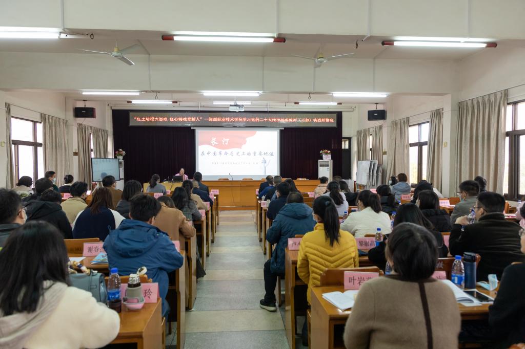 为深入学习贯彻党的二十大精神,我校“红土培根大思政 红心铸魂育新人”--学习党的二十大精神思政教师(干部)实践研修班于12月9日在长汀县委党校正式开班,参加思政教师(干部)实践研修班的有:我校马院全体教师、大思政口各单位全体教师、干部。为发挥好党史立德树人的重要作用,传承好老区精神、苏区精神,研修班第一课邀请王英作《长汀在中国革命历史上的重要地位》专题讲座,王英老师系中共长汀县委党史和地方志研究室主任、中共长汀县委宣讲团成员。