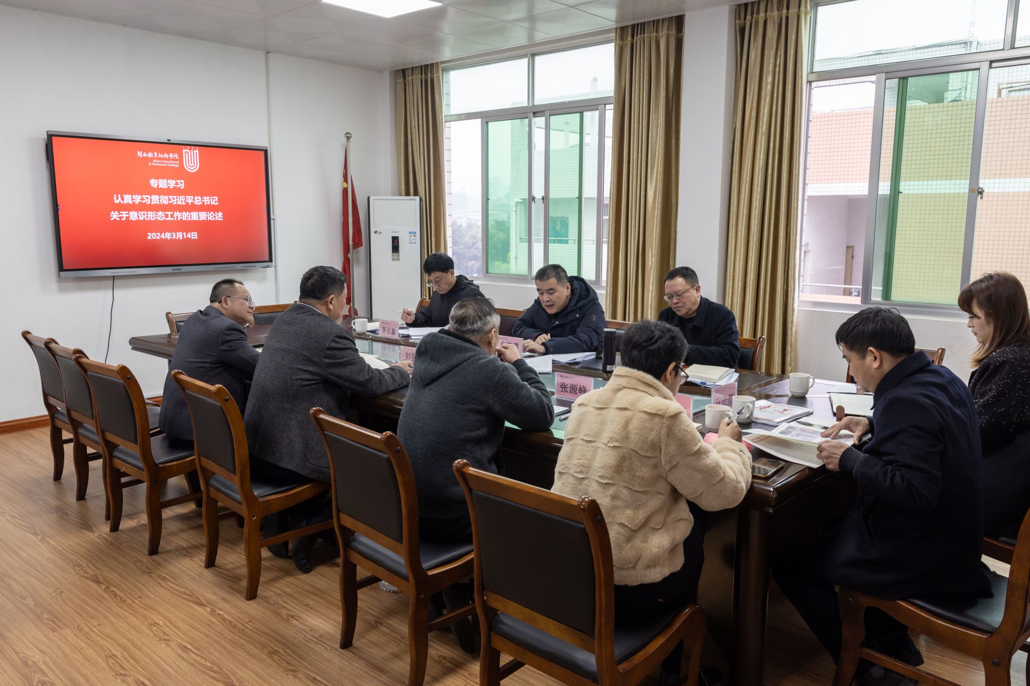 3月14日下午,校党委理论学习中心组2024年第三次学习会在六楼会议室召开,学习会围绕认真学习贯彻习近平总书记重要文章:《完整、准确、全面贯彻落实关于做好新时代党的统一战线工作的重要思想》《铸牢中华民族共同体意识 推进新时代党的民族工作高质量发展》,认真学习习近平总书记重要著作:《深入推进我国宗教中国化》,认真学习贯彻习近平总书记关于意识形态工作的重要论述,专题学习习近平总书记关于力戒形式主义官僚主义的重要论述摘编、习近平总书记关于艰苦奋斗、勤俭节约思想的重要论述。认真传达学习习近平总书记在全国两会期间的重要讲话精神和2024年全国两会精神。校党委书记卢伟耀主持学习会,校党委副书记李贞鑫作专题发言,中心组成员围绕学习内容进行讨论交流,校宣传部负责人、机关党总支书记列席学习会。