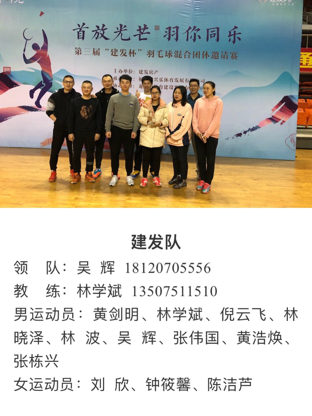 3月16-17日,林学斌老师代表建发队获龙岩市第三届“建发杯”羽毛球混合团体赛第一名