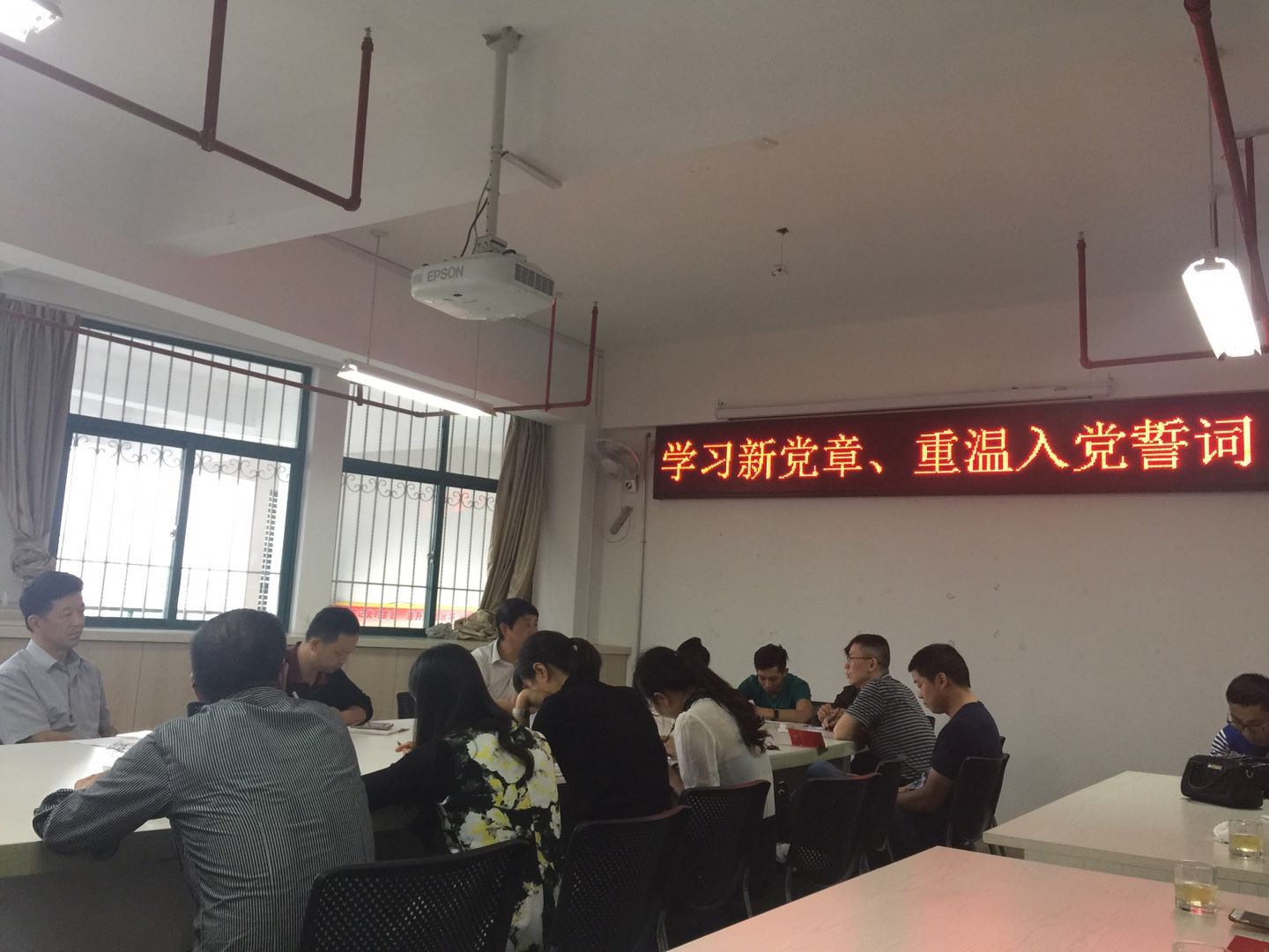 11月14日下午,教育系第二党支部全体党员在教学综合楼8楼会议室认真学习了新党章、重温入党誓词。