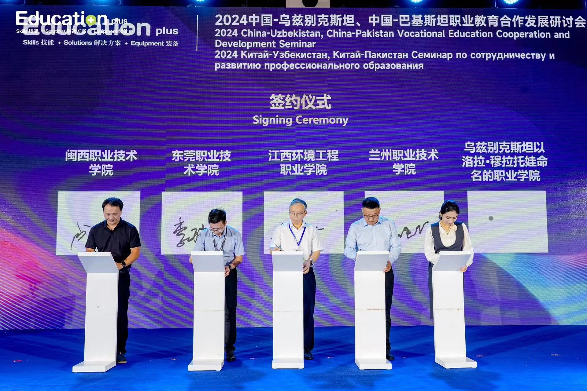 在2024中国-乌兹别克斯坦、中国-巴基斯坦职业教育合作发展研讨会上,温献荣代表学校参加中乌职业教育联盟成立及“中国-乌兹别克斯坦职业教育联盟授牌仪式”,对外交流合作处相关人员代表学校参加了乌兹别克斯坦国家级项目签约仪式及中巴国际产教合作联盟增员仪式。