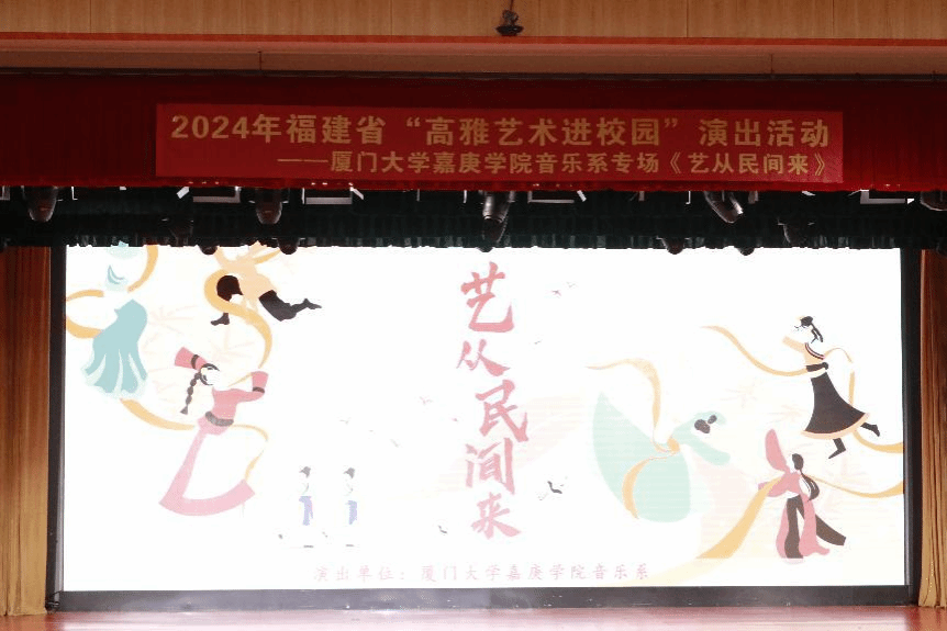 11月16日晚,2024年福建省“高雅艺术进校园”演出活动——厦门大学嘉庚学院音乐系专场《艺从民间来》在校本部大匠堂顺利举办。活动由省教育厅、省文旅厅主办,厦门大学嘉庚学院承办,我校团委协办。全校共700余名师生观看演出。