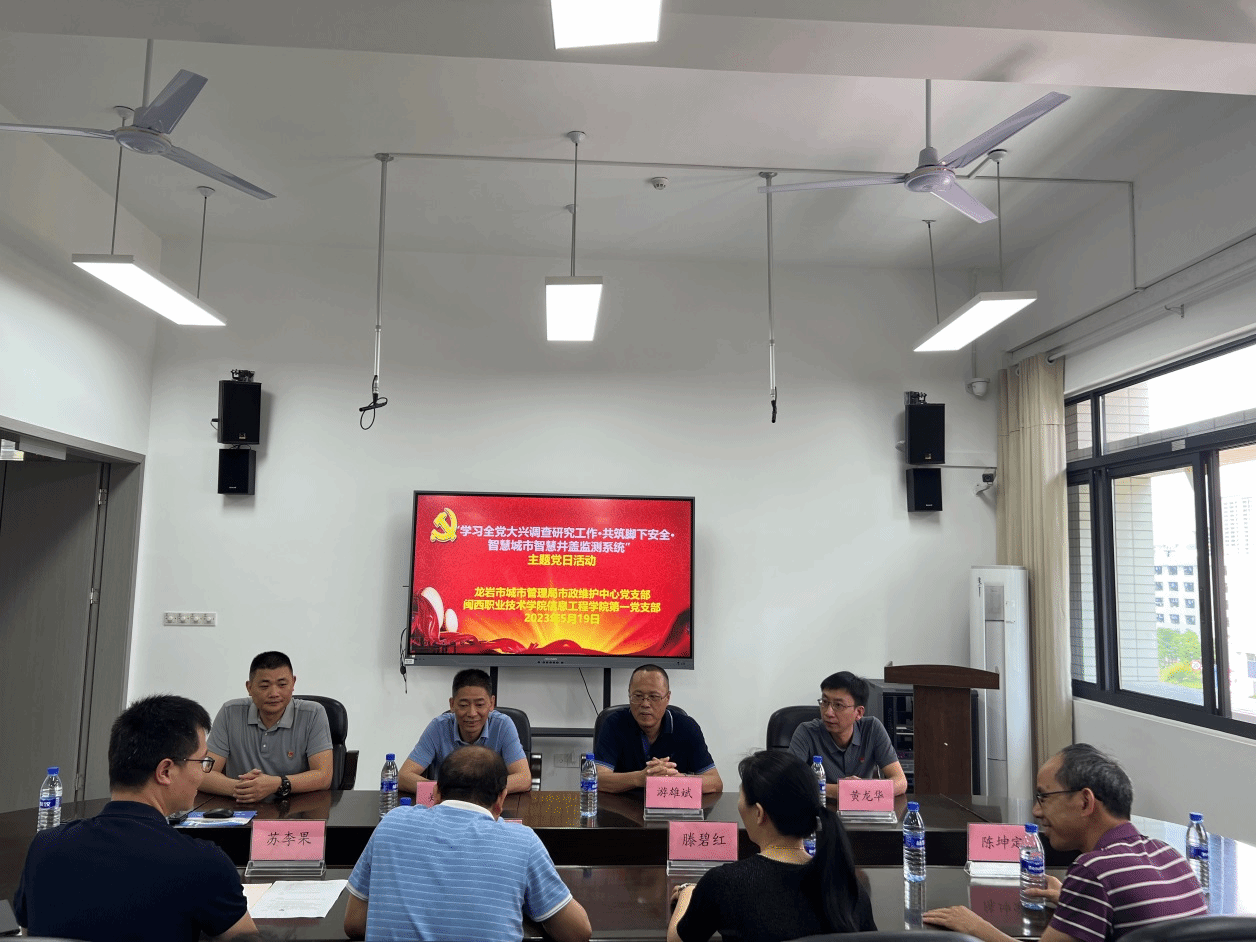 近日,我校信息工程学院第一党支部与龙岩市城市管理局市政维护中心党支部共同开展主题为“智慧赋予城市活力 数字保障脚下安全”的党日活动,旨在学习全党大兴调查研究工作,双方共同推进智慧城市相关工作。双方支部党员参加本次主题党日活动。