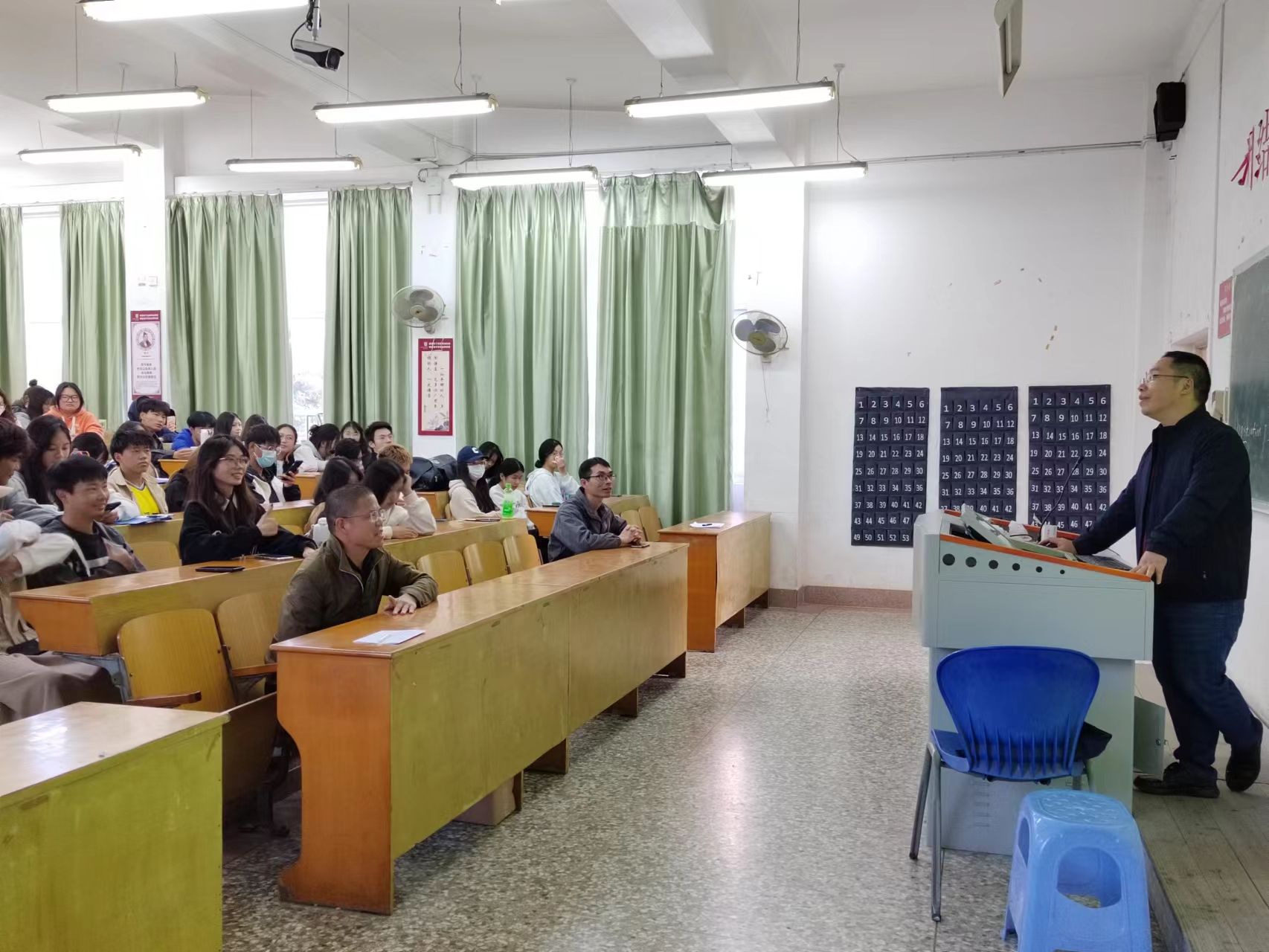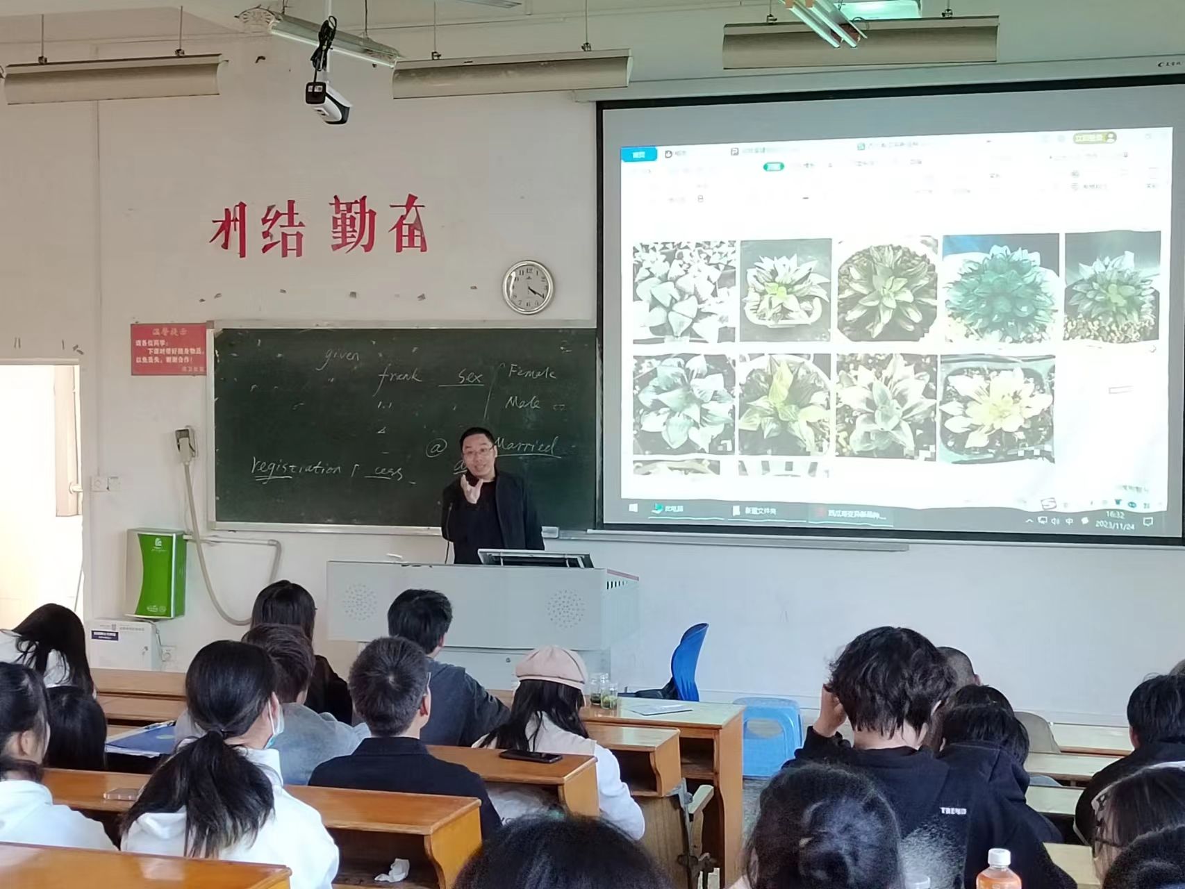 樊仲书展示了禾康生物目前培养的多肉品种,包括一些受欢迎的植物种类和特殊品种。这些多肉植物通过植物组织培养技术繁殖,不仅保持了原始品种的特性,而且能够在短时间内大量生产。 讲座最后,樊仲书与学生进行了互动交流,回答了他们关于植物组织培养、创新创业和未来职业规划等方面的问题。他还分享了一些他在大学期间的专业学习和创新创业经验,给予了建议和引导,并把公司的多肉品种通过有奖问答的形式奖励给了同学们。