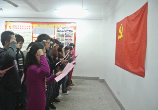 1月7日,机械工程系党总支在系党员学习室举行新党员入党宣誓仪式。系党总支董东明、郭玲、陈泉开、罗炳莲、陈建萍等老师出席仪式。19位新党员面对鲜艳的党旗发出庄严宣誓。