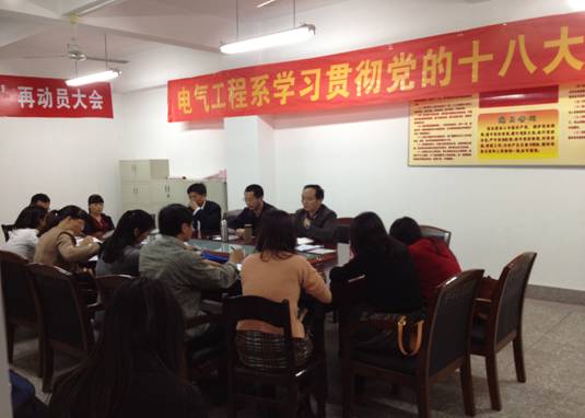 11月23日,电气工程系党总支举办学习宣传贯彻党的十八大精神专题会,组织全系教职工认真学习党的十八大精神。会议由该系党总支负责人彭复生主持。