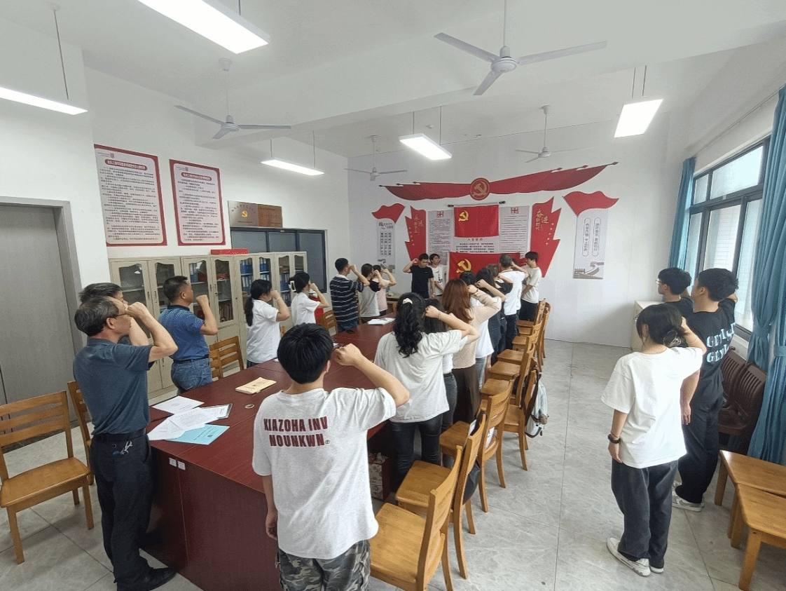 随后,全体党员重温入党誓词。支部组织委员领誓,全体党员一同举起右拳,面向鲜红的党旗,集体庄严宣誓。