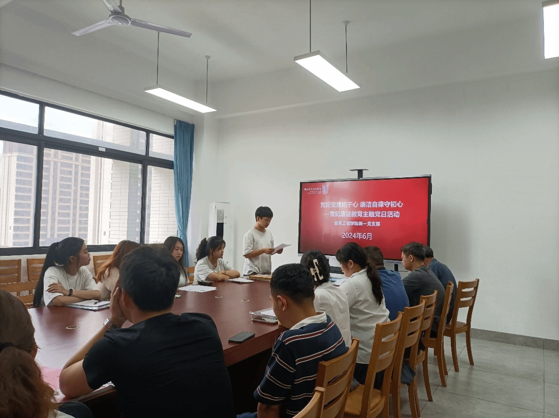 随着毕业季的到来,在2024届毕业生即将踏上人生新征途之际,信息工程学院第一党支部于2024年6月开展了主题为“党纪党规铭于心 廉洁自律守初心”的党日活动,旨在加强支部党员党性修养,增强守纪律、讲规矩意识, 增强拒腐防变能力和廉洁从业意识,勉励毕业生党员把遵规守纪铭记于心,以廉洁自律为立身之本,牢筑信仰之基,踏实、稳健走好人生“第一步”,开启人生新征程。