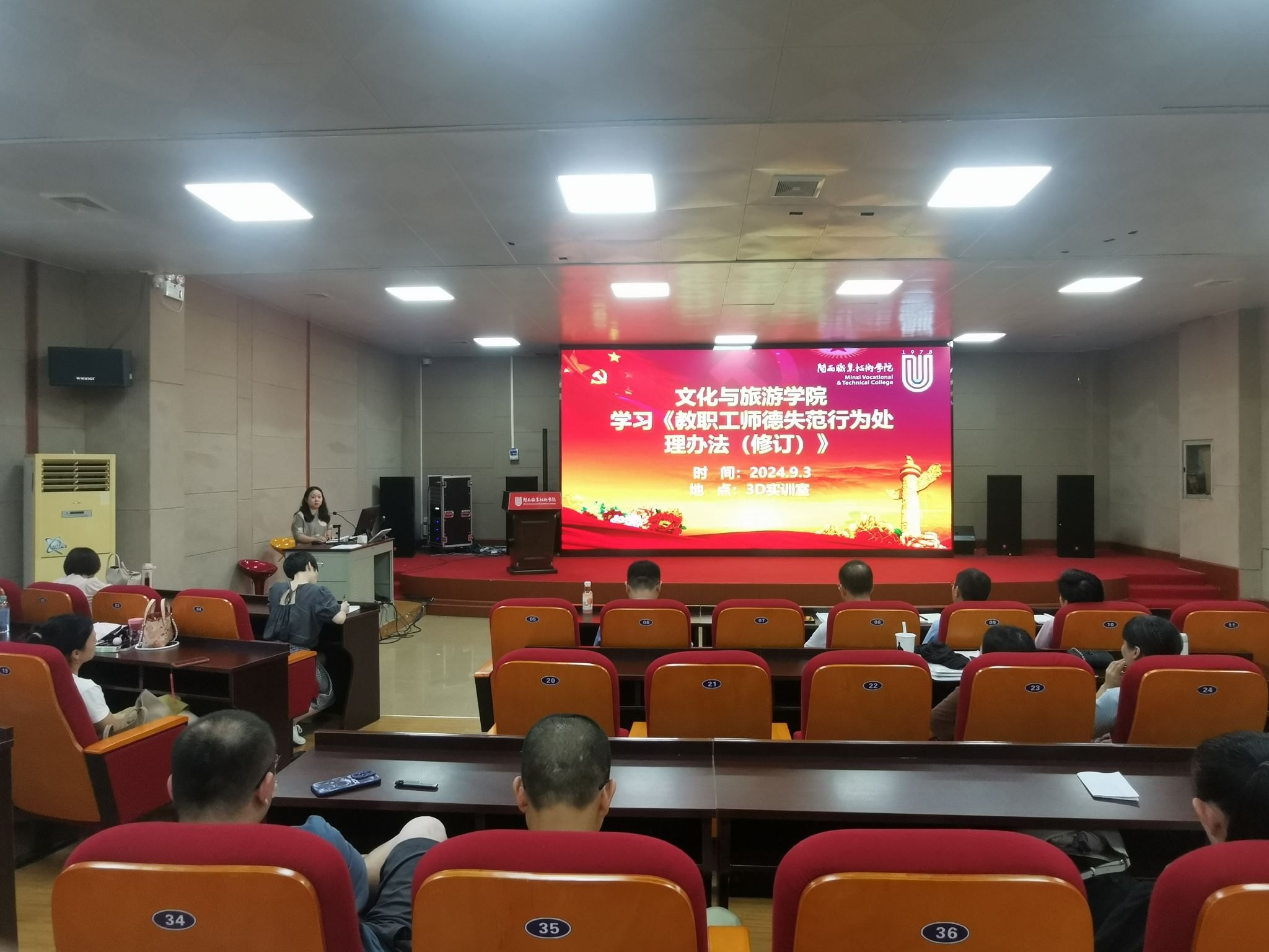为深入学习贯彻习近平总书记关于教育的重要论述,2024年9月3日,文化与旅游学院在卫培3D实训室召开了师德师风专题学习会议,旨在坚决落实师德师风作为教师队伍建设的第一标准,不断加强师德师风建设,筑牢广大教师为党育人、为国育才的初心和使命。