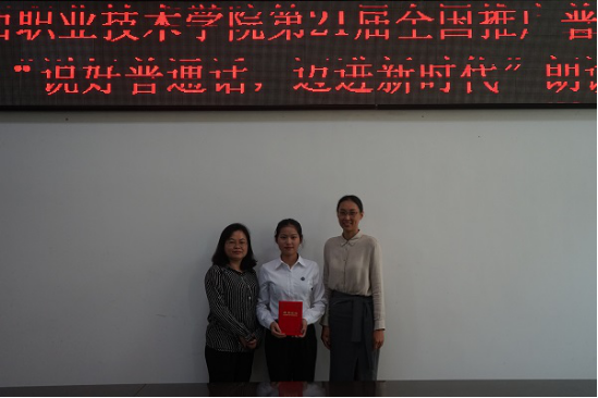经过激烈的角逐,环境工程系王曼莉同学获得一等奖,财经商贸学院郭景阳、教育系余世敏获得二等奖,医学护理学院曾前、环境工程系罗林曼、教育系蒋榕娟和医学护理学院的郭清蓉获得三等奖;信息与制造学院吴端雯获得最佳形象奖,城乡建筑学院张慧敏获得最佳台风奖。