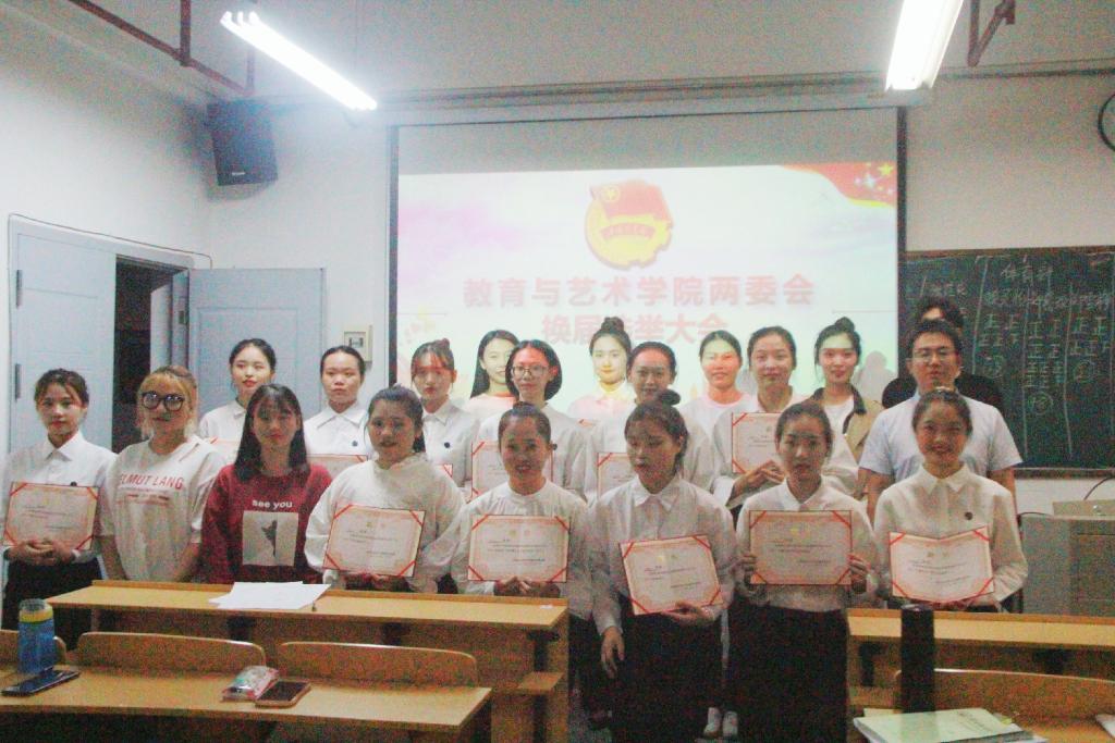 2020年10月19日和10月23日,教育与艺术学院分别进行第一届两委“主席团”和“部门干部”换届选举大会。学院党总支副书记曹熠城老师、团委书记邹寅将老师、辅导员胡丹老师、陈玲老师、刘观金老师,两委学生干部干事、班级代表参会。