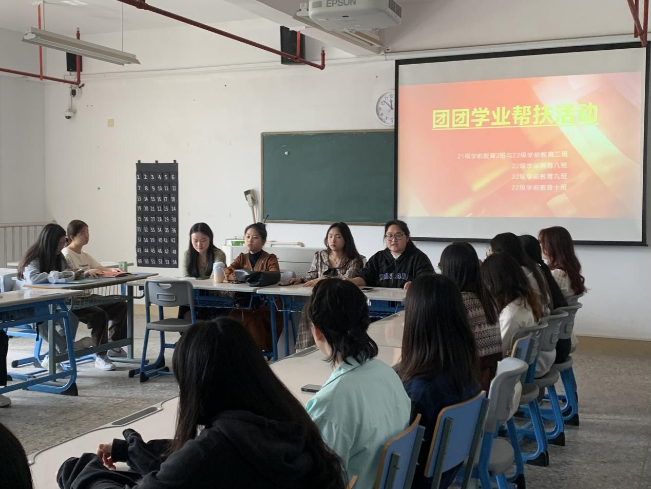 为落实立德树人根本任务,加强学风建设,帮助学业困难学生树立学习信心,端正学习态度,增加学习自觉性,有效提高学习成绩。教育与艺术学院于2023年3月17日在岩声楼开展有组织、有针对性的“团团学业帮扶”团日活动。由2021级团支部干部主持,2022级各班团支部成员们参加本次活动。
