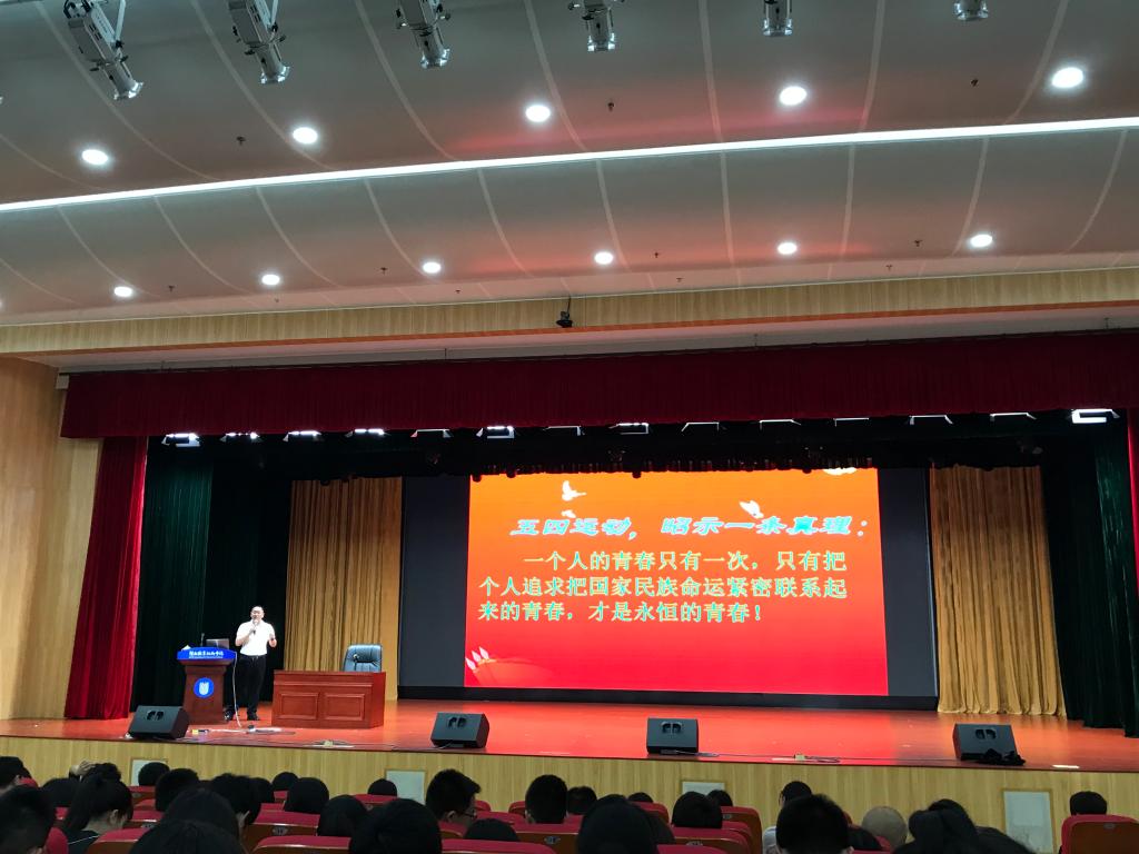 陈训明副书记作了主题为《传承五四精神 让世界听见青春中国的强劲心跳》的宣讲,从新时代青年的使命与责任、向总书记学习是最好的学习以及向内在寻找成长的力量三个方面展开讲解,着重阐述了“要坚持大历史观,把五四运动放到中华民族5000多年文明史、中国人民近代以来170多年斗争史、中国共产党90多年奋斗史中来认识和把握”的原因,强调了青年学生传承好五四精神必须做到爱国、进步、民主及科学这四点要求,其中针对怎么向习近平总书记学习提出三点要求:一、欲想成功先练累功,二、理想的起点决定生命的终点,三、一生勇作行动派。最后,陈训明副书记还送给大家五项“功夫”分别是:思功、累功、做功、大功、谦功,勉励青年学子要向习近平总书记学习,坚定理想,勤于学习,向美而行,止于至善,勇于筑梦、追梦、圆梦。