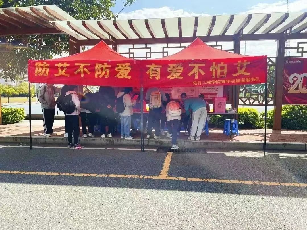 2022年12月1日为第35个“世界艾滋病日”,为营造全社会参与艾滋病防治工作的良好氛围,提高艾滋病防治知识知晓率,培养青年学生文明健康的生活方式,近日,软件工程学院的青年志愿者们在校园文化长廊开展了以“防艾不防爱,有爱不怕艾”为主题的艾滋病预防宣传活动。此次活动为期两天,共派发了1200余份宣传单、1400余个安全套、2000多个红丝带,写下了1800余份祝福语。