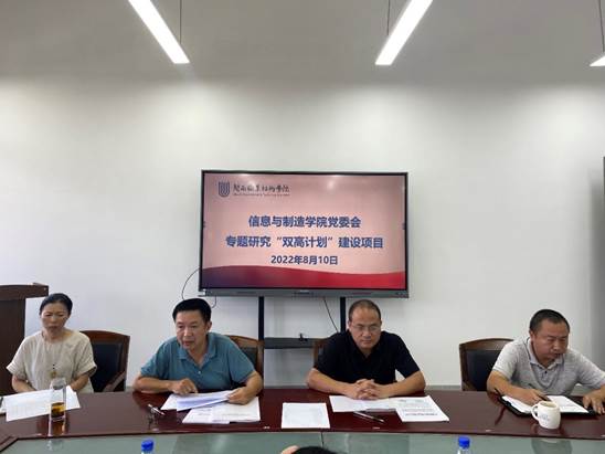 为推进“双高计划”建设项目进度、确保建设项目高质量完成,8月10日下午,信息与制造学院党委在辛耕楼205会议室召开“双高计划”建设项目推进会。学院党政领导、党委委员、党支部书记,专业群负责人,专业主任参加会议,会议由刘加养书记主持。