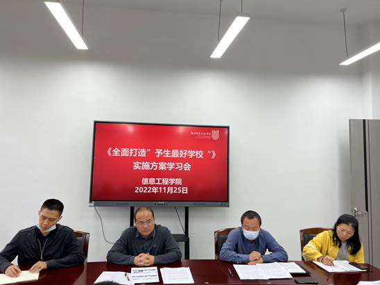 11月25日下午,信息工程学院(筹)组织全体教职工学习“全面打造‘予生最好学校’”实施方案。