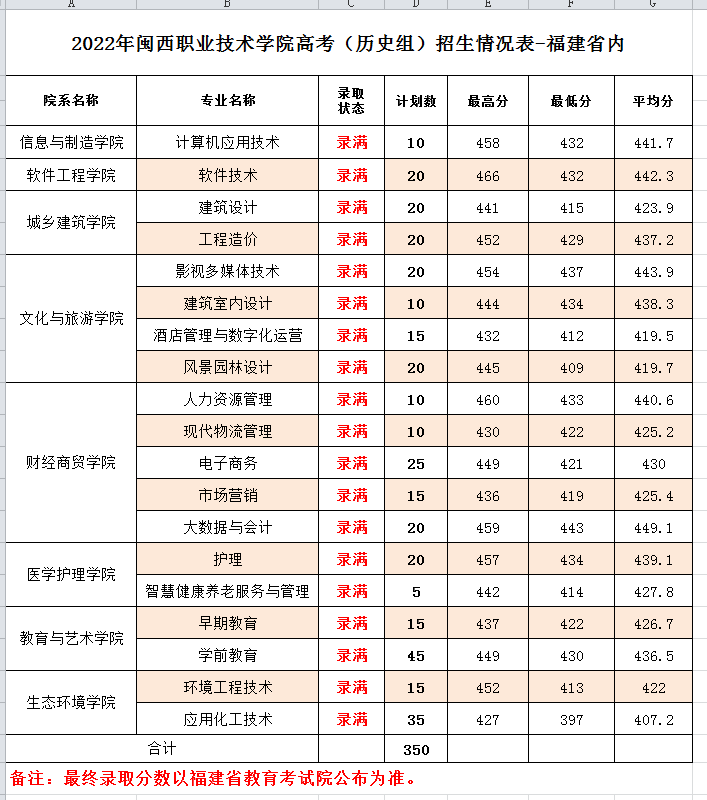 royal皇家88平台2022年福建省内高考招生计划一次性录满,其中物理组最高分457分(超本科线29分),最低投档分359分,平均分391分;历史组最高分466分,最低投档分397分,平均分431分。